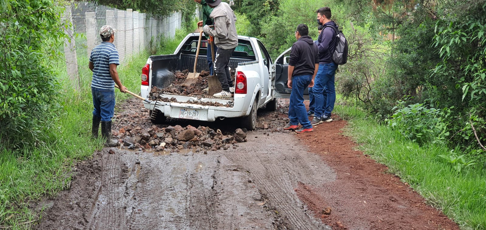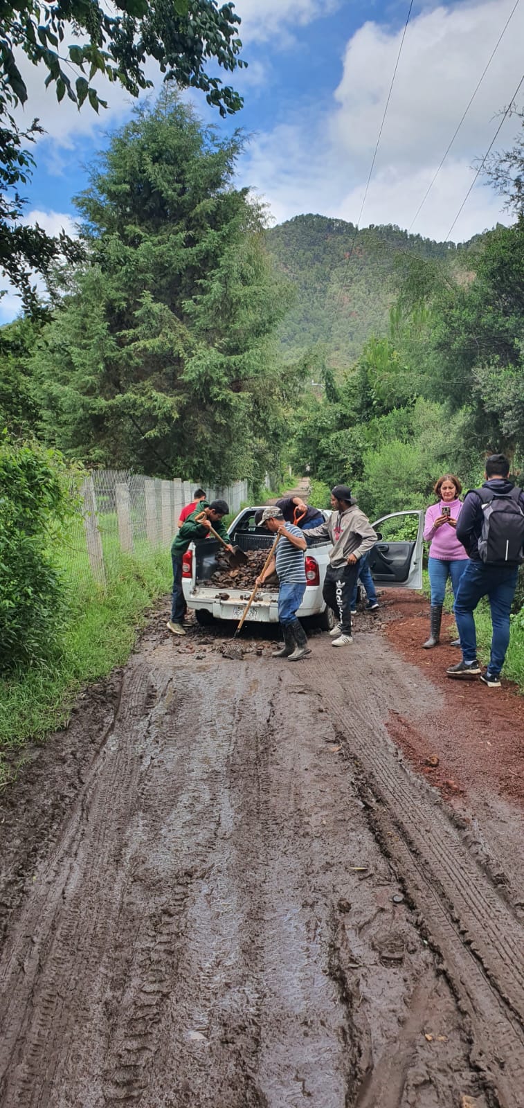 Con palas, picos y cubetas hicieron trabajos de mantenimiento al camino para evitar que se siga encharcando por causa de las lluvias; así poder tener un fácil acceso peatonal para evitar tener un accidente al brincar los charcos o salpicaduras.